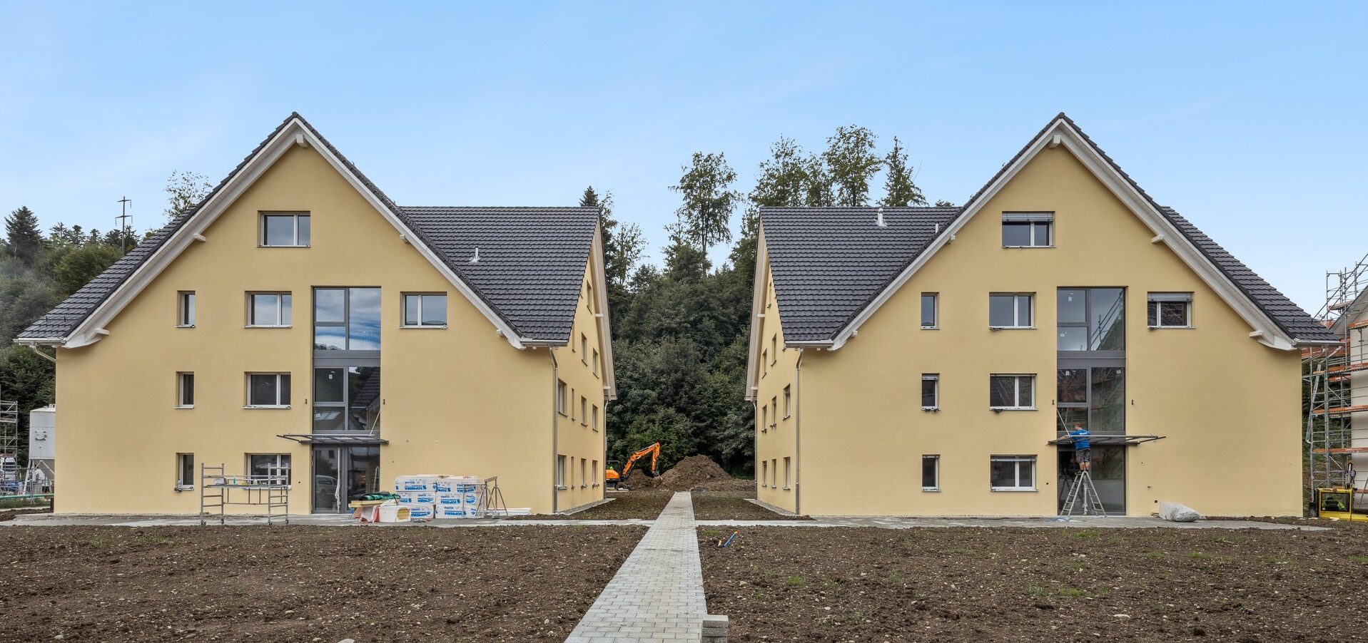 Das neue Wohnquartier verfügt unter anderem über drei Mehrfamilienhäuser mit insgesamt 24 Wohnungen. Jedes Haus verfügt über drei 4.5 Zimmer Wohnung und vier 3.5 Zimmer Wohnungen sowie ein 1 Zimmer Studio.